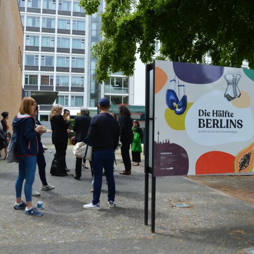 Diese Kooperationsveranstaltung zur Situation migrantischer Frauen* in Berlin findet im Kontext der Open-Air-Ausstellung »Die Hälfte Berlins – ein Blick auf 150 Jahre Frauenbewegung« der Berliner Landeszentrale für politische Bildung statt.