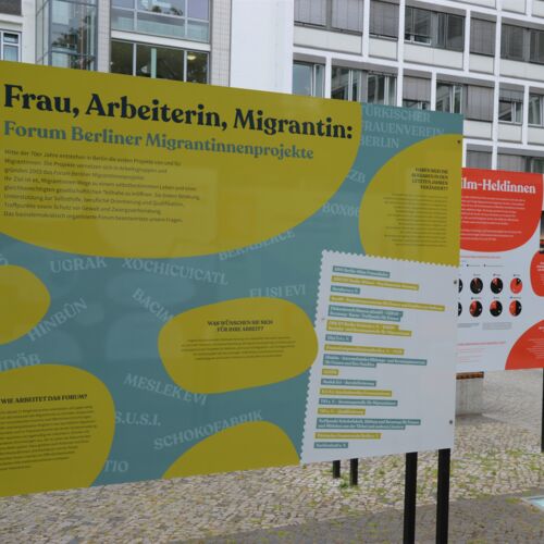 Diese Kooperationsveranstaltung zur Situation migrantischer Frauen* in Berlin findet im Kontext der Open-Air-Ausstellung »Die Hälfte Berlins – ein Blick auf 150 Jahre Frauenbewegung« der Berliner Landeszentrale für politische Bildung statt.